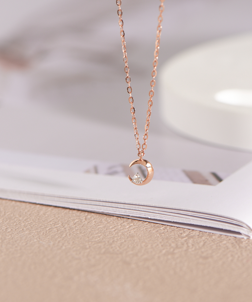 Moon 14K鑽石項鍊